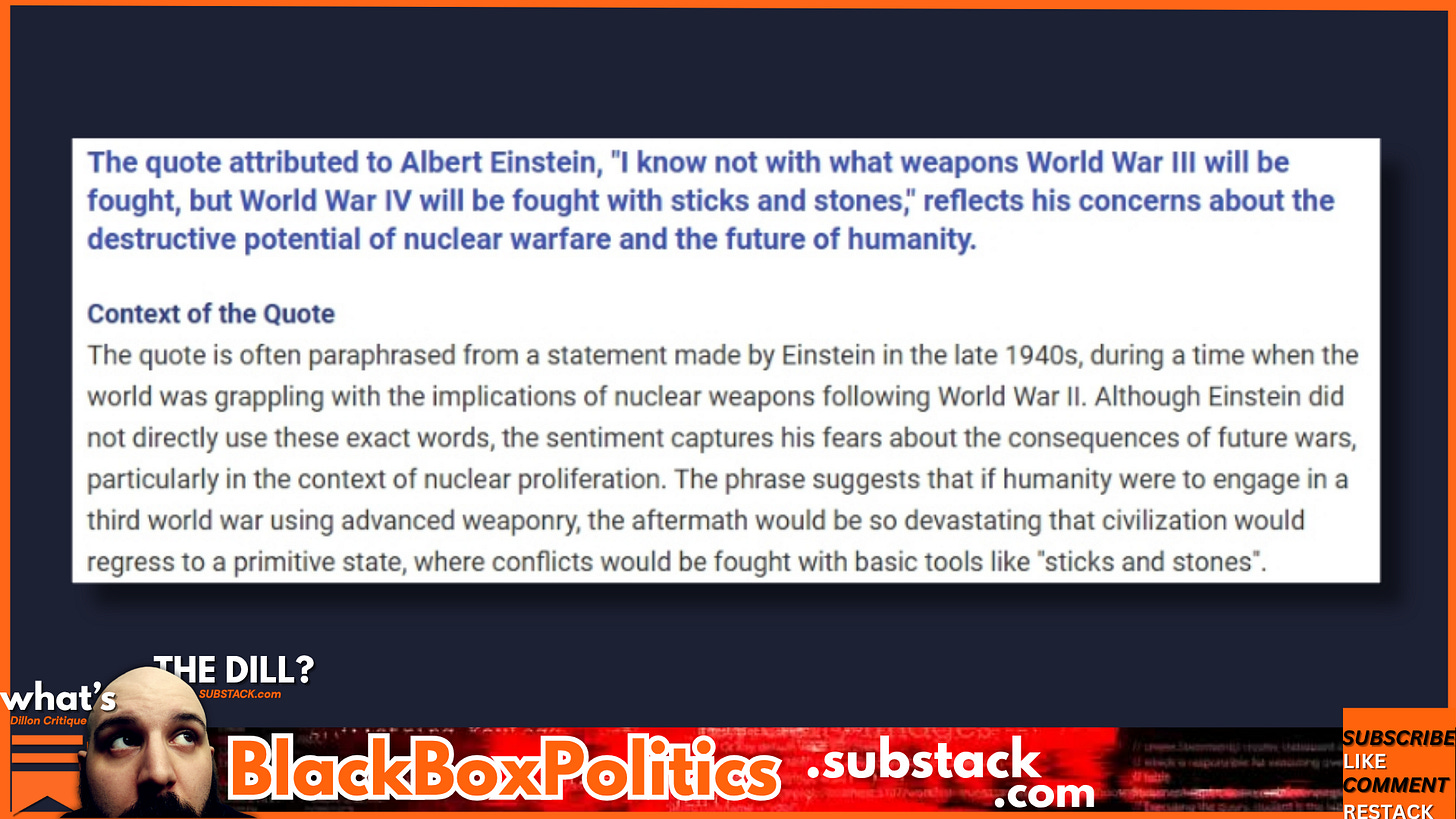 Albert Einstein played his part as a Social-Engineer and “Change-Agent” to help foment this, ‘end of the World’ EXOTERIC pre-programming and pre-conditioning social engineering psychological operation narrative within the public psyche during WW2 with the following famously known quote around the world today (as pre-planned)…